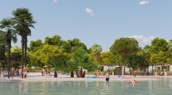 Von feinem Sand und Palmen gesäumt, ist unsere kürzlich tropische Lagune ein kleines Stück Paradies direkt auf dem Campingplatz!